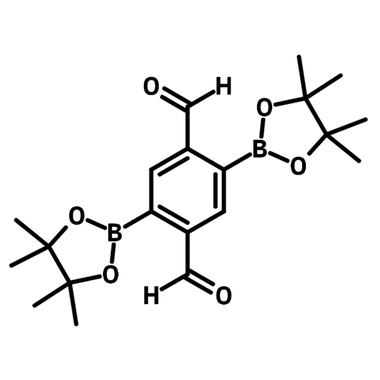 2,5-Bis(4,4,5,5-tetramethyl-1,3,2-dioxaborolan-2-yl)terephthalaldehyde (CAS number 2305615-53-4), is a benzene derivative with two aldehyde and two pinacolborane substituents. Both the aldehyde groups and pinacolborane groups are located at the para-positions. 2,5-Bis(4,4,5,5-tetramethyl-1,3,2-dioxaborolan-2-yl)terephthalaldehyde serves as a versatile ligand and it is readily employed as a monomer for Suzuki cross-coupling reactions and amination reactions. Notably, the functional groups do not interfere with each other during these reactions. It makes the COFs synthesized from 2,5-bis(4,4,5,5-tetramethyl-1,3,2-dioxaborolan-2-yl)terephthalaldehyde ideal for post-functionalization after the polymer network is formed.