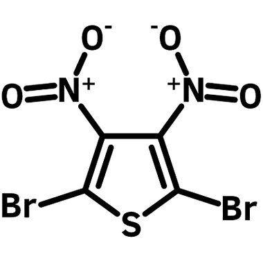 2,5-Dibromo-3,4-dinitrothiophene (CAS number 52431-30-8) is a fully substituted thiophene unit with two electron withdrawing nitro groups at 3,4-positions and two bromo functional groups at 2,5-postions. Nitro groups can be reduced to amino groups to further form thienopyrazines and thieno[3,4-b]thiadiazole. Bromo groups gives the functionality for C-C formation reactions, i.e. Stille or Suzuki couplings.