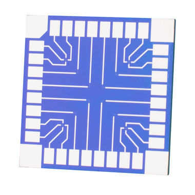 The electrode contacts are placed along the edges of the test chip, allowing optical measurements to be carried out without obstruction from wires.