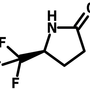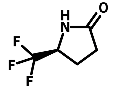 (5S)-(−)-5-(Trifluoromethyl)-2-pyrrolidinone (CAS number 1287211-10-2), a derivative of the well known 2-pyrrolidinone, is a five-membered lactam (γ-lactam) with a trifluoromethyl substituent on a S-chiral carbon center (left-handed). Many derivatives of 2-pyrrolidinone are bioactive including cotinine (antidepressant), doxapram (respirator stimulant) and seletracetam (anticonvulsant). (5S)-(−)-5-(Trifluoromethyl)-2-pyrrolidinone has a high potential for using in APIs development, due to the lipophilicity from trifluoromethyl group. The chiral center is also preferred for systematic studies in medicinal chemistry.