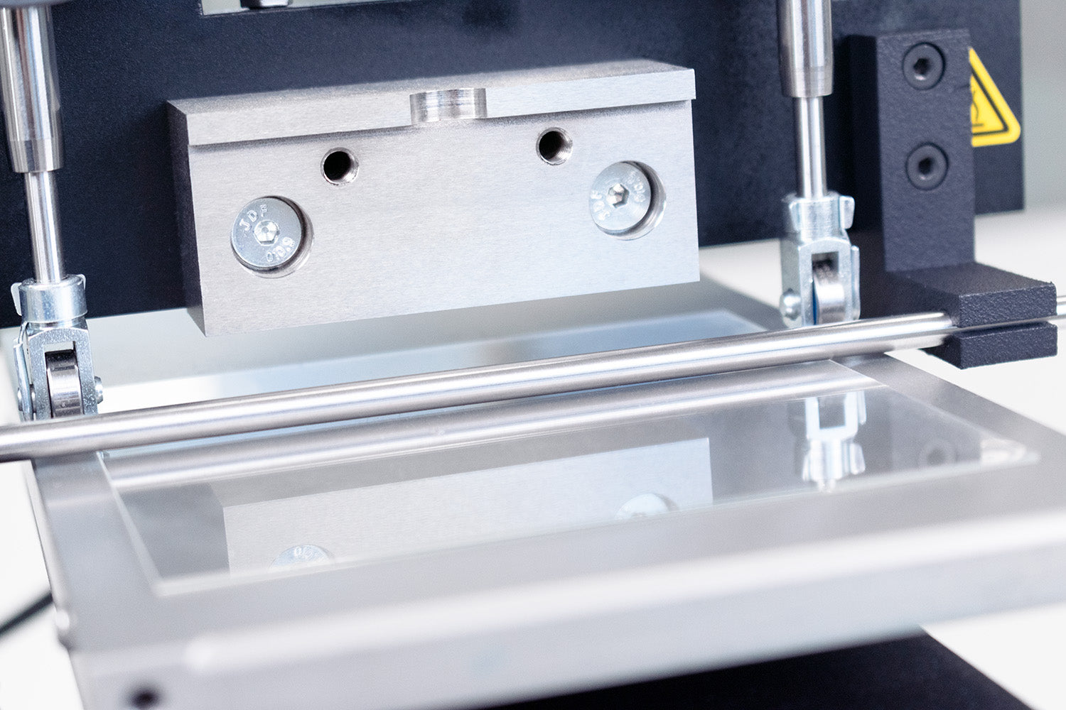 One of the challenges in lab-scale slot-die coating is how to account for any thickness deviation between different substrates. The height of each substrate can vary slightly between batches or even within the same batch. You will therefore need to redefine coating height with each new substrate.