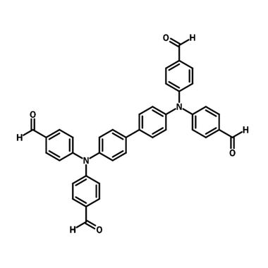 4,4',4'',4'''-([1,1'-Biphenyl]-4,4'-diylbis(azanetriyl))tetrabenzaldehyde (CAS number 865448-72-2) is a tetraphenylbenzidine derivative functionalized with four aldehyde groups. With a tetratopic geometry, it is commonly used for the synthesis of imine-linked COFs. The resulting COFs from 4,4',4'',4'''-([1,1'-biphenyl]-4,4'-diylbis(azanetriyl))tetrabenzaldehyde and porphyrin are effective heterogeneous photocatalysts for reversible addition-fragmentation chain-transfer polymerization through photoinduced electron transfer. Additionally, such COFs are applied in hydrogen evolution from water, exhibiting a hydrogen evolution rate up to 10 mmol/g·h.