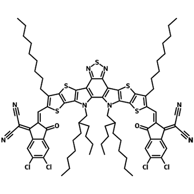 | Full Name | 2,2'- [[12,13-Bis(2-butyloctyl)-12,13-dihydro-3,9-dinonylbisthieno[2'',3'':4',5']thieno[2',3':4,5]pyrrolo[3,2-e:2',3'-g][2,1,3]benzothiadiazole-2,10-diyl]bis[methylidyne(5,6-chloro-3-oxo-1H-indene-2,1(3H)-diylidene) ]]bis[propanedinitrile] |