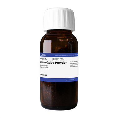 Indium oxide (CAS number 1312-43-2), is a semiconducting metal oxide with a bandgap of around 3 eV. Indium oxide can be doped by various metals to afford transparent conducting oxide such as ITO. Indium oxide offers high electron mobility up to 100 cm2/V·s, making it an ideal material for high performance field effect transistors (FETs). Due to its wide bandgap, indium oxide has high optical transparency (transmittance of 70–80%) with refractive index of 2.0.