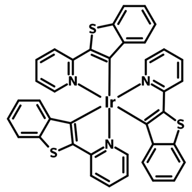 Tris(2-(benzo[b]thiophen-2-yl)pyridineiridium, known as Ir(btpy)3, is an efficient red phosphorescent emitter (PHOLED). It is commonly used in organic light-emitting diodes and polymer solar cells as a dopant, and in barometric pressure probes due to its sensitivity to oxygen [2].