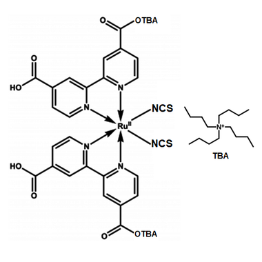 | Full name | Di-tetrabutylammonium cis-bis(isothiocyanato)bis(2,2′-bipyridyl-4,4′-dicarboxylato)ruthenium(II) |