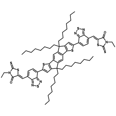 | Full Name | (5Z,5'Z)-5,5'-((7,7'-(4,4,9,9-tetraoctyl-4,9-dihydro-s-indaceno[1,2-b:5,6-b']dithiophene-2,7-diyl)bis(benzo[c][1,2,5]thiadiazole-7,4-diyl))bis(methanylylidene))bis(3-ethyl-2-thioxothiazolidin-4-one) |
