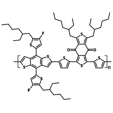 PBDB-T-2F (CAS number 1802013-83-7) is a PBDB-T family member and, like others, has a high OPV device performance. Polymer solar cells with PBDB-T-2F as the donor and ITIC-2F as the acceptor have achieved a power conversion efficiency (PCE) of over 13%.