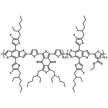 | Full Name | Poly[(2,6-(4,8-bis(5-(2-ethylhexyl)-4-fluoro)thiophen-2-yl)-benzo[1,2-b:4,5-b’]dithiophene)-alt-(5,5-(1’,3’-di-2-thienyl-5’,7’-bis(2-ethylhexyl)benzo[1’,2’-c:4’,5’-c’]dithiophene-4,8-dione))]-ran-poly[(2,6-(4,8-bis(5-(2-ethylhexyl)thiophen-2-yl)-benzo[1,2-b:4,5-b’]dithiophene))-alt-(2,2-ethyl-3(or4)-carboxylate-thiophene)] |