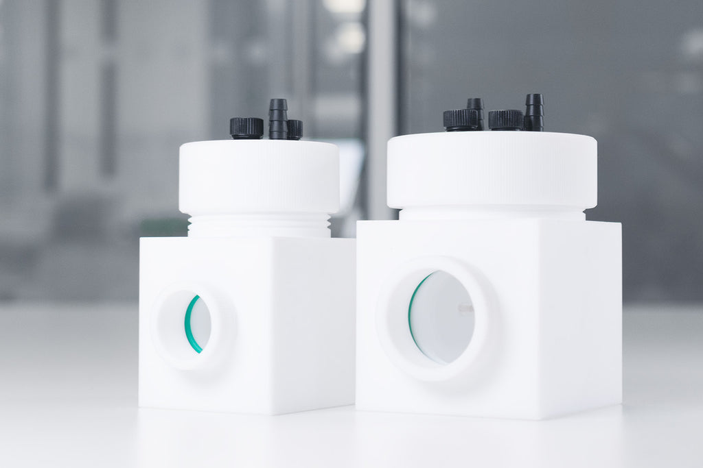 Our photoelectrochemical cells (PEC) are available in PTFE or glass body, both can employ either a two or three-electrode system using a platinum disc working electrode, a counter electrode, and a reference electrode (optional).