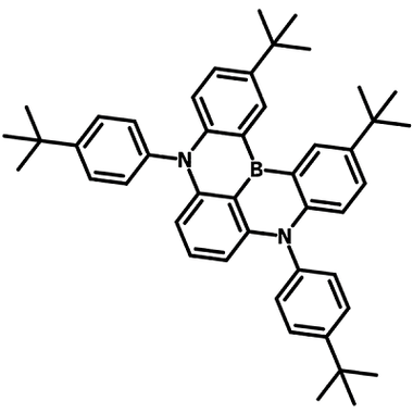 High purity sublimed narrowband multi-resonance thermally activated delayed fluorescent (MR-TADF) emitter for highly efficient OLEDs, 2,12-di-tert-butyl-5,9-bis(4-(tert-butyl)phenyl)-5,9-dihydro-5,9-diaza-13b-boranaphtho[3,2,1-de]anthracene, CAS No. 1802003-07-1), Unsublimed ≥99.0%, Sublimed ≥99.5%