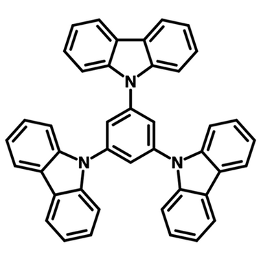With three carbazole units attached to the benzene ring, 1,3,5-tris(carbazol-9-yl)benzene (tCP) is electron-rich and an excellent hole-transporting layer (HTL) material. It is mainly used as a phosphorescent host material for light-emitting diodes.