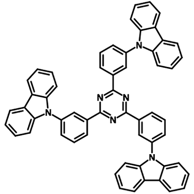 TCPZ - 2,4,6-Tris(3-(9H-carbazol-9-yl)phenyl)-1,3,5-triazine is a bipolar host with an electron withdrawn triphenyltriazine center and three electron rich carbazole peripheral units.