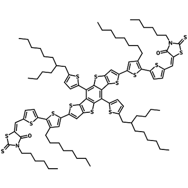 | Full Name | 5,5'- [[4,8-bis[5-(2-butyloctyl)-2-thienyl]dithieno[2,3-d:2′,3′-d′]benzo[1,2-b:4,5-b′]dithiophene-2,6-diyl]bis([3'-octyl[2,2'-bithiophene]-5'',5-diyl)methylidyne ]]bis[3-hexyl-2-thioxo-4-thiazolidinone] |